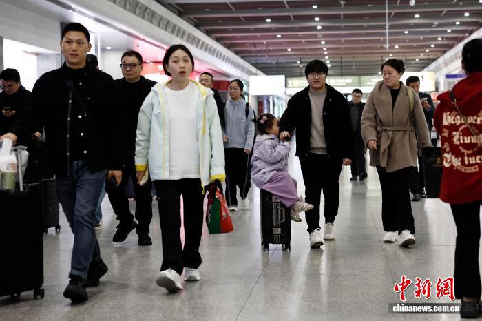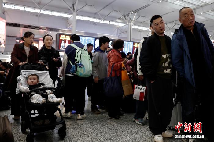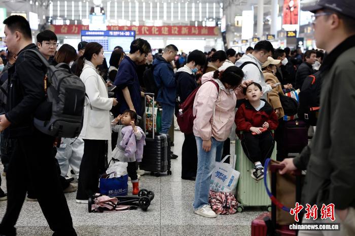 4月3日,搭客带着孩童正在铁道上海虹桥站候车年夜厅恭候验票上车。中新社记者 殷坐勤 摄