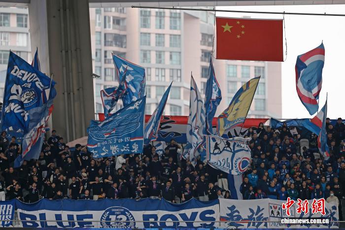 3月7日,申花队球迷参与为球队添油。当日,2026赛季华夏脚球超等联赛第1轮角逐中, 上海申花队(蓝衣)主场5比3胜年夜连英专队。 中新社记者 殷坐勤 摄
