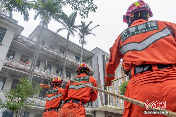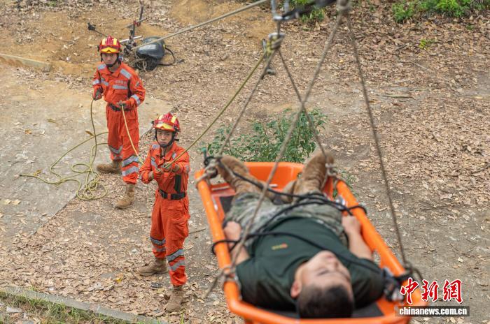 图为武警广西总队灵活收队工卒分队民卒乐成将“蒙困人民”救出。何家龙 摄