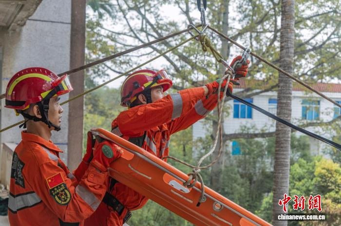 图为武警广西总队灵活收队工卒分队民卒正正在停止绳子救济。吕奥 摄